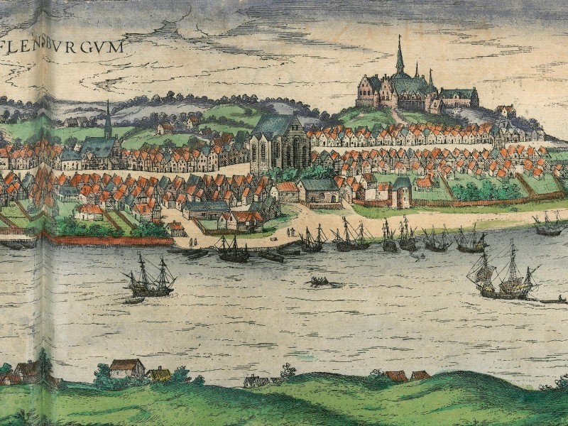 - Flensburg, in: Braun, Georg, Hogenberg Frans: Civitates Orbis Terrarum (4), Cologne 1594, fol. 30v; Heidelberg University.
