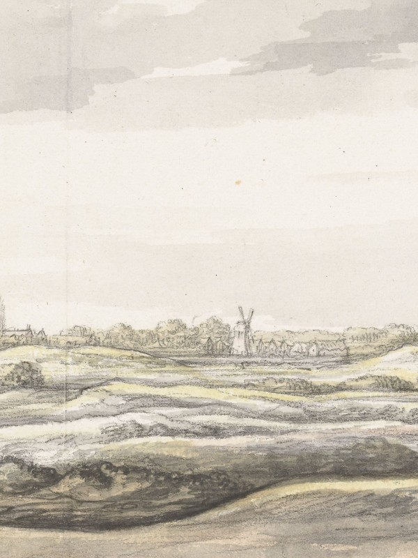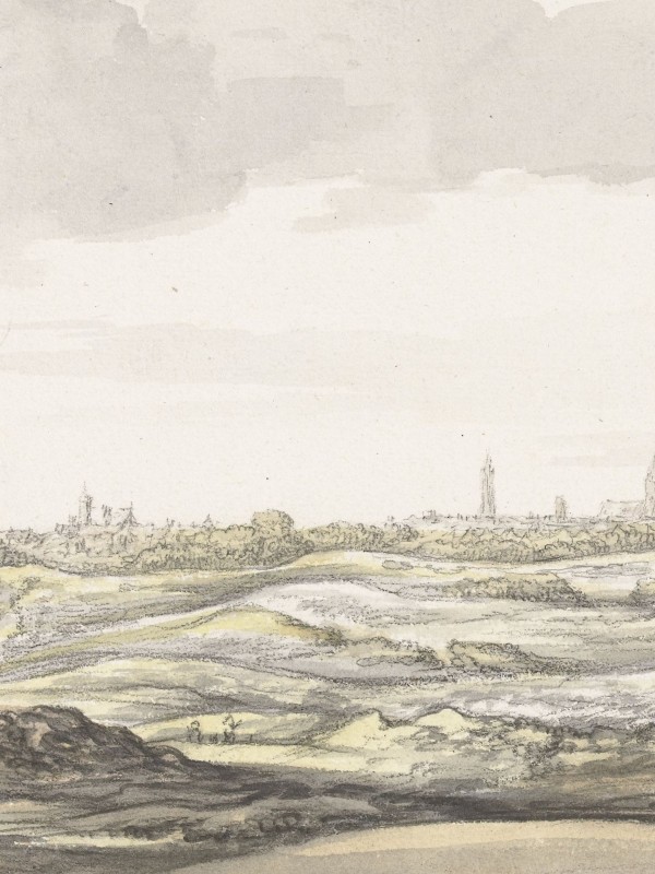 The road from Haarlem to Leiden, as seen in a drawing by the Amsterdam draftsman and publisher Claes Jansz. Visscher, led past the Haarlemmer Hout. This was a wooded area popular for day trips. The road is labelled ‘De Haerlem Wech’ on the map, and it passes along the large Haarlemmermeer to the east and sandy dunes followed by the North Sea to the west.