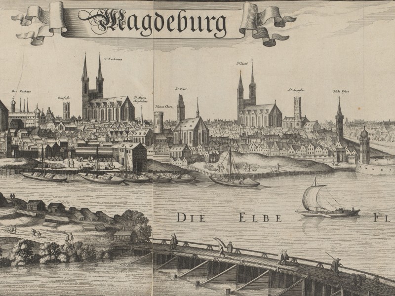 This print offers a rare view of a city that Samuel Kiechel visited, which, fifty years later, no longer existed in this state. The print is dated 1637, but it is older. By 1637, Magdeburg was in ruins. The city and its residents endured great suffering during the Thirty Years’ War (1618–1648). Magdeburg was besieged by imperial troops and captured on 20 May 1631. During the war’s worst massacre, soldiers killed around 20.000 inhabitants and burned the city to the ground. The cathedral was one of the few structures to survive.