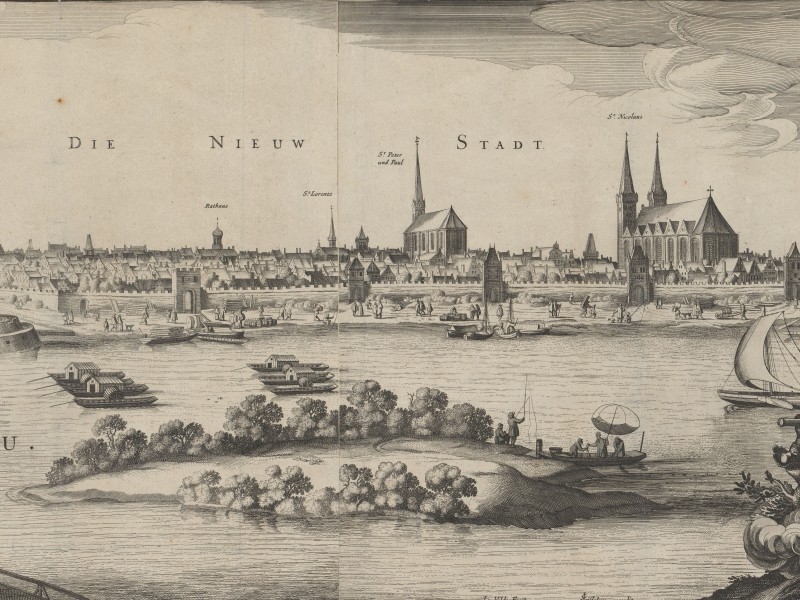 Samuel Kiechel had come from the east, and a similar sight of the city must have greeted him. The view across the Elbe depicts Magdeburg not only as a religious centre but also as a commercial hub. While the city’s numerous churches, including the impressive cathedral, attest to Magdeburg’s religious significance, the lively activity along the river, with many boats being loaded and unloaded, underscores its role as a vital commercial hub in the region.